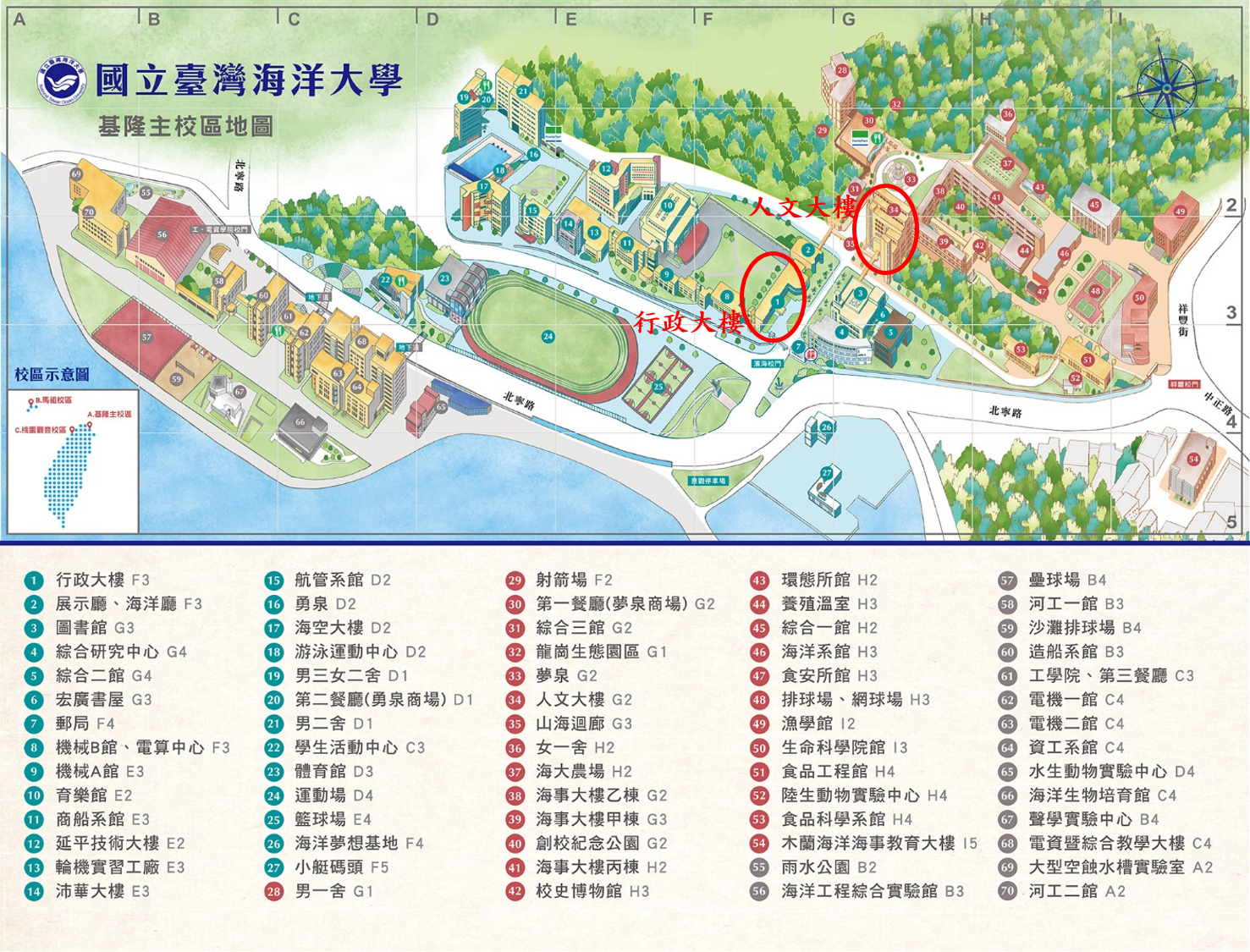 年會地點|國立臺灣海洋大學行政大樓與人文大樓