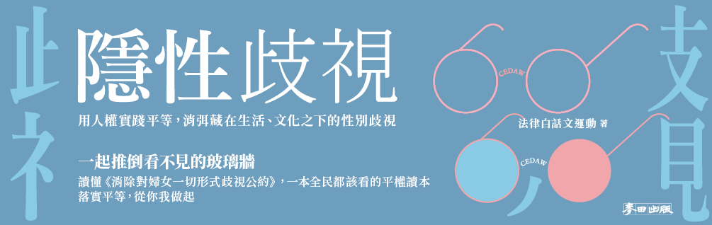 法律白話文運動(李柏翰、陳冠瑋編)(2025)《隱性歧視:用人權實踐平等,消弭藏在生活、文化之下的性別歧視》https://www.books.com.tw/products/0011009363......